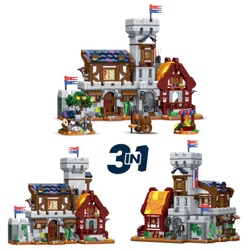Medieval Castle Town Bricks 3in1 DIY Street View House Building Blocks Toys