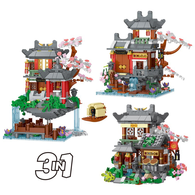3in1 Peach Garden House Building DIY Creative Decoration Building Blocks